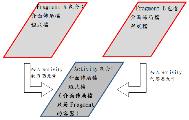 (一) Activity的程式架構 vs. 加入Fragment之後的程式架構